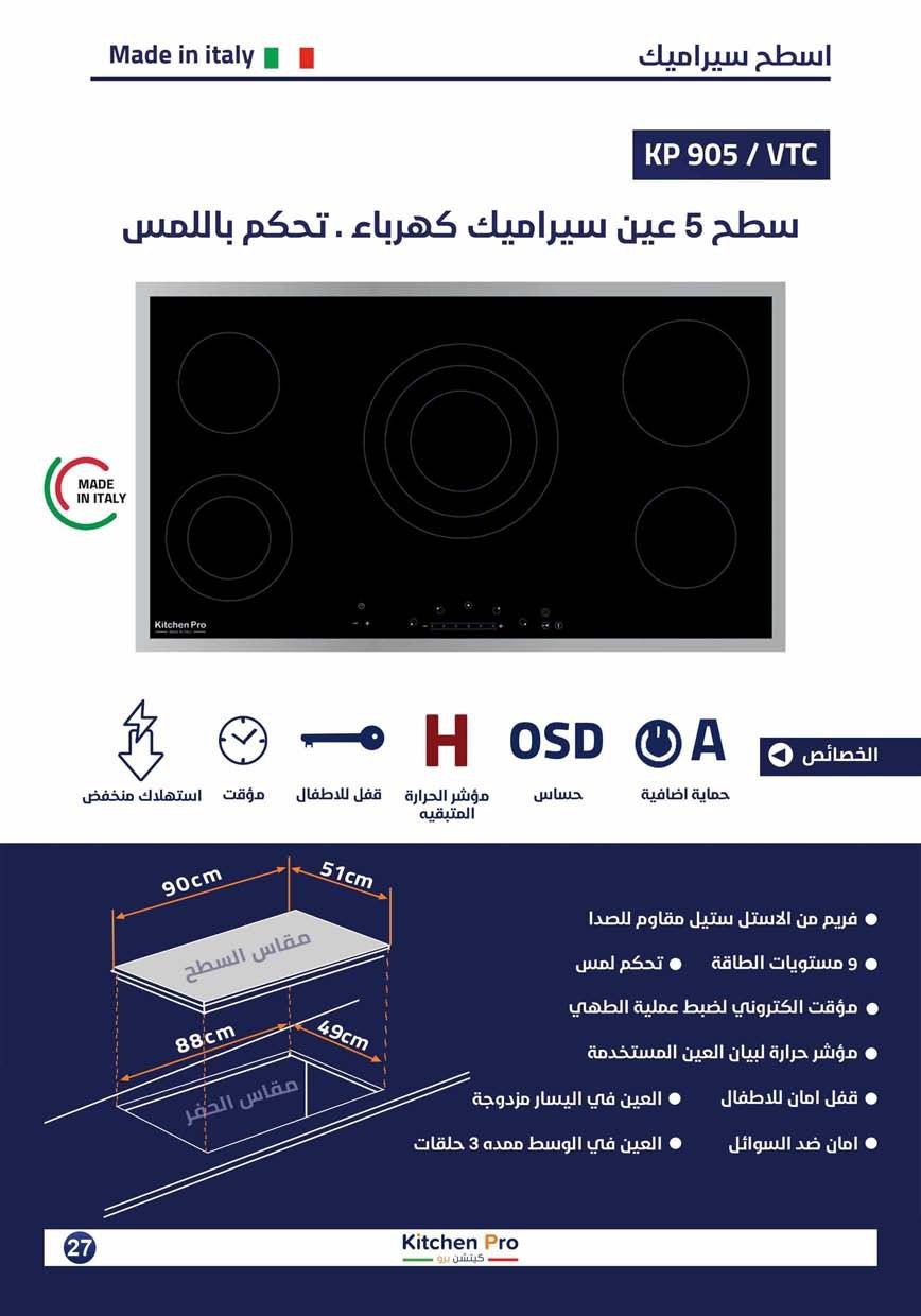 سطح 5عين سيراميك لمس ايطالي 90سم kitchen pro معا فريم من الأستيل