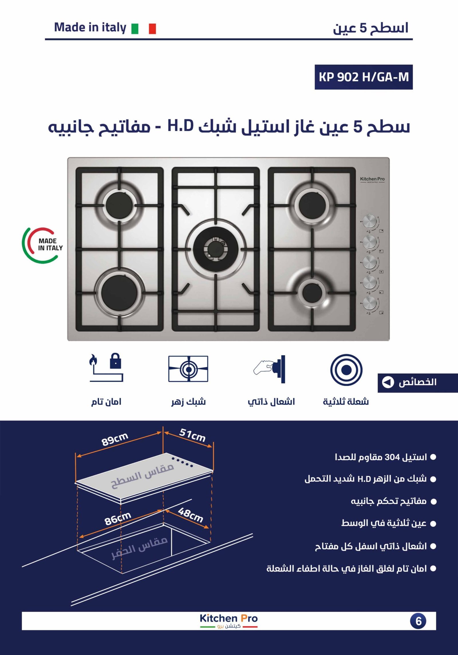 وصف الجهاز: سطح 5 عين غاز مفاتيح جانبيه شبك hd