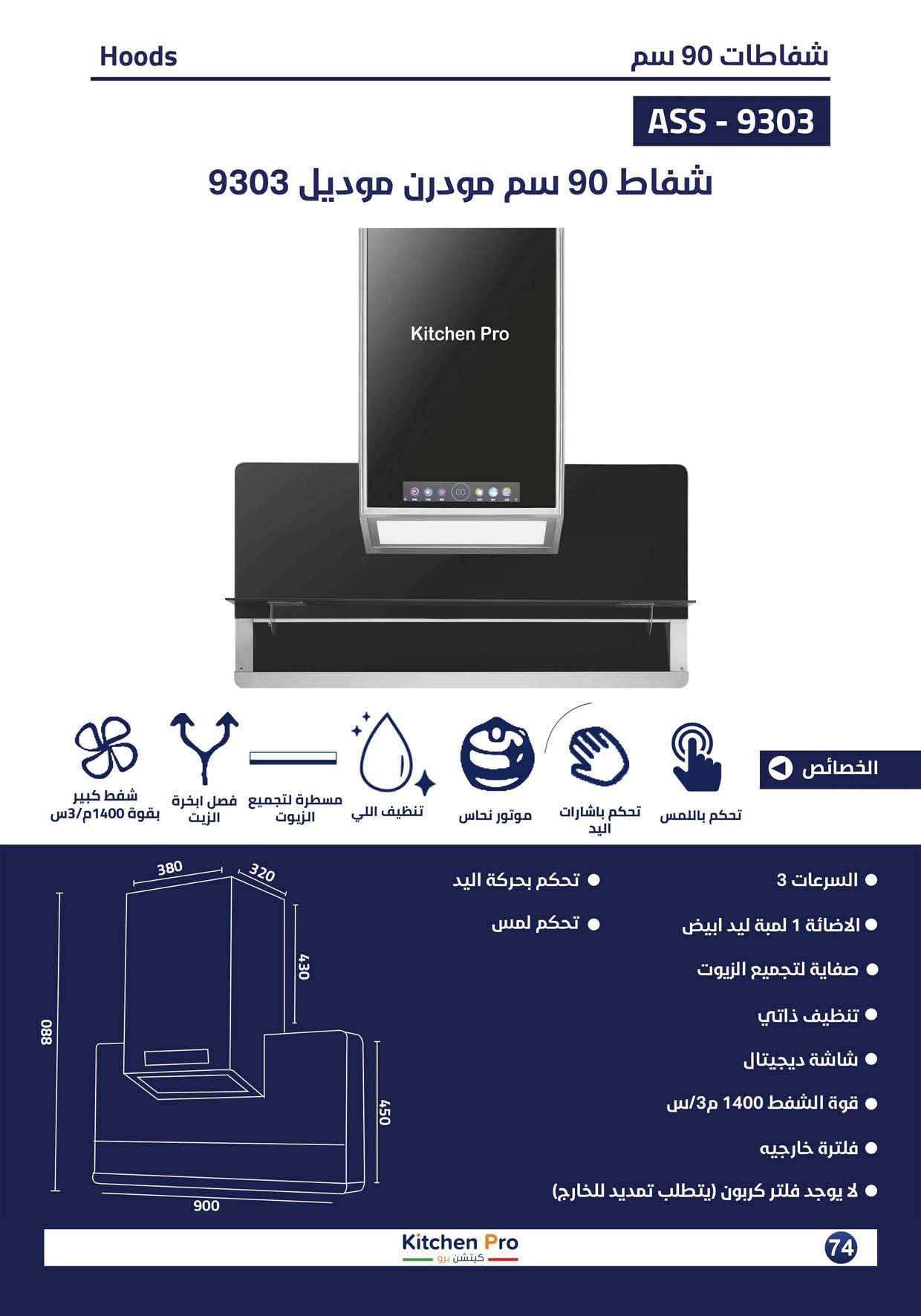 شفاط كيتشن برو موديل AAS-9303 قوة شفط 1400م3/ساعه